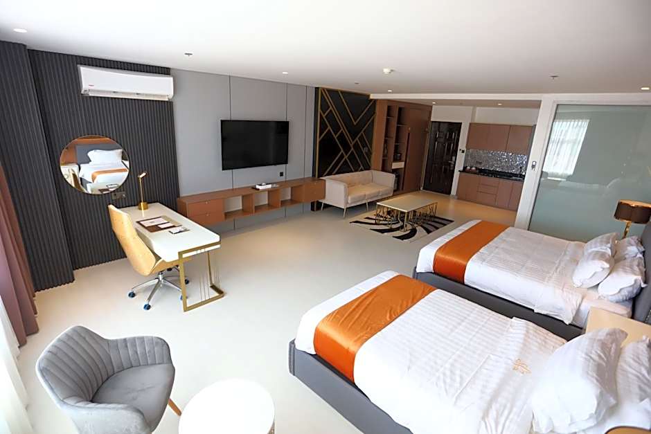 A versatile slate of rooms suits solo travelers to big groups. Deluxe comes with 2 Double beds in 355 square feet and can accommodate up to 4 adults and 3 children. Executive Suite, also with 2 Double beds, spans 593 square feet and seats up to 4 adults and 2 children. Suite, King features 570 square feet with a King and a Twin bed, accommodating up to 4 adults and 2 children, while Superior, King offers 312 square feet with a single King bed for up to 2 adults and 2 children. Additional configurations include Executive King at 593 square feet for up to 4 adults and 3 children.
